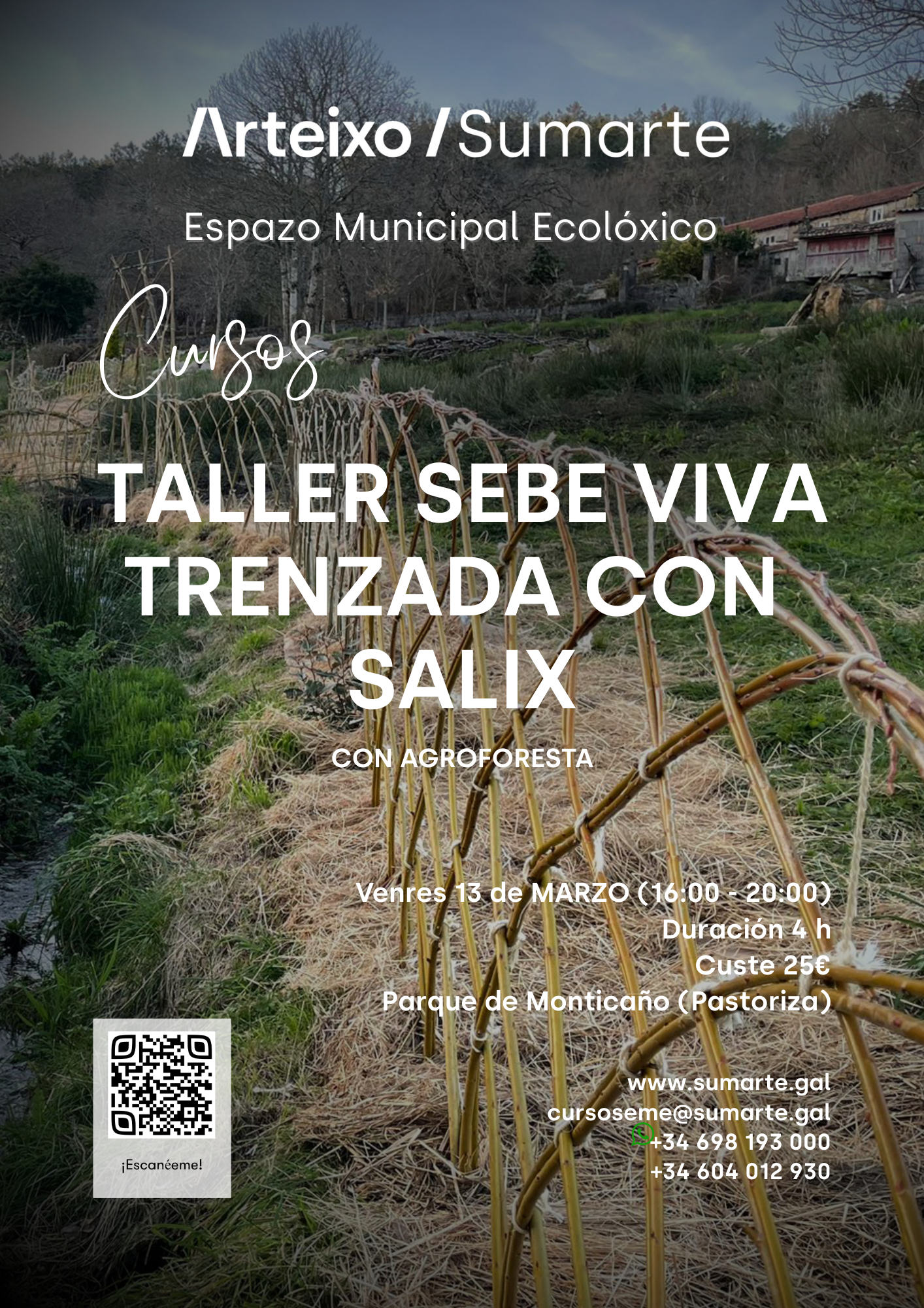 Este taller ten coma obxectivo aprender a deseñar e crear unha sebe viva trenzada empregando vimbios de Salix, combinando estética e funcionalidade. Ensinaranse técnicas de plantación, trenzado e mantemento para asegurar o enraizamento e crecemento saudable das plantas.