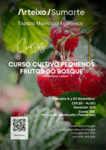 CURSO DE CULTIVO DE PEQUENOS FRUTOS DO BOSQUE Este curso ten como obxectivo coñecer e aprender sobre o cultivo, coidado e colleita de froitas como arándoos, framboesas, mouras e amorodos. Este curso de dous sábados de duración cubre desde a planificación e...